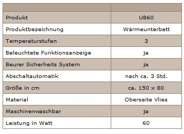Produktinformationen "Beurer UB 60 Wärmeunterbett 150 x 80 cm"