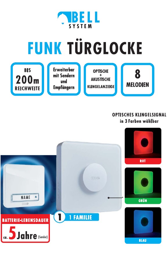 Produktinformationen "M-E BELL 241 Set Funk Türglocke für 1-Familien-Haus mit vollflächiger optischer Klingelanzeige"