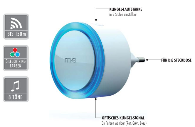 Empfänger für die Steckdose- 8 auswählbare Klingeltöne in exzellenter Klangqualität
