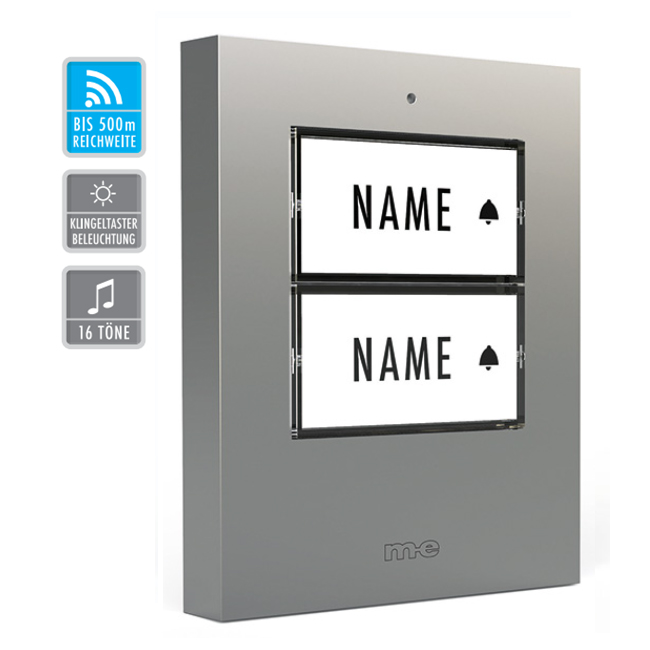 Produktinformationen "M-E BELL 502 TXS Funk Klingeltaster für 2 Familien Haus SILBER"