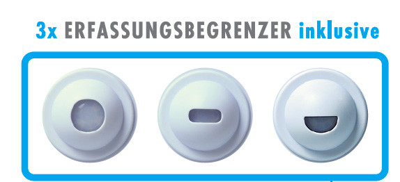 - Erfassungsbereich 90°, individuell justierbar über mitgelieferte Abdeckkappen