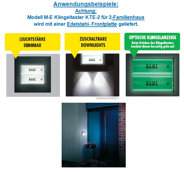 Produktinformationen "M-E Klingeltaster KTE-2 für 2-Familienhaus EDELSTAHL-Frontplatte"