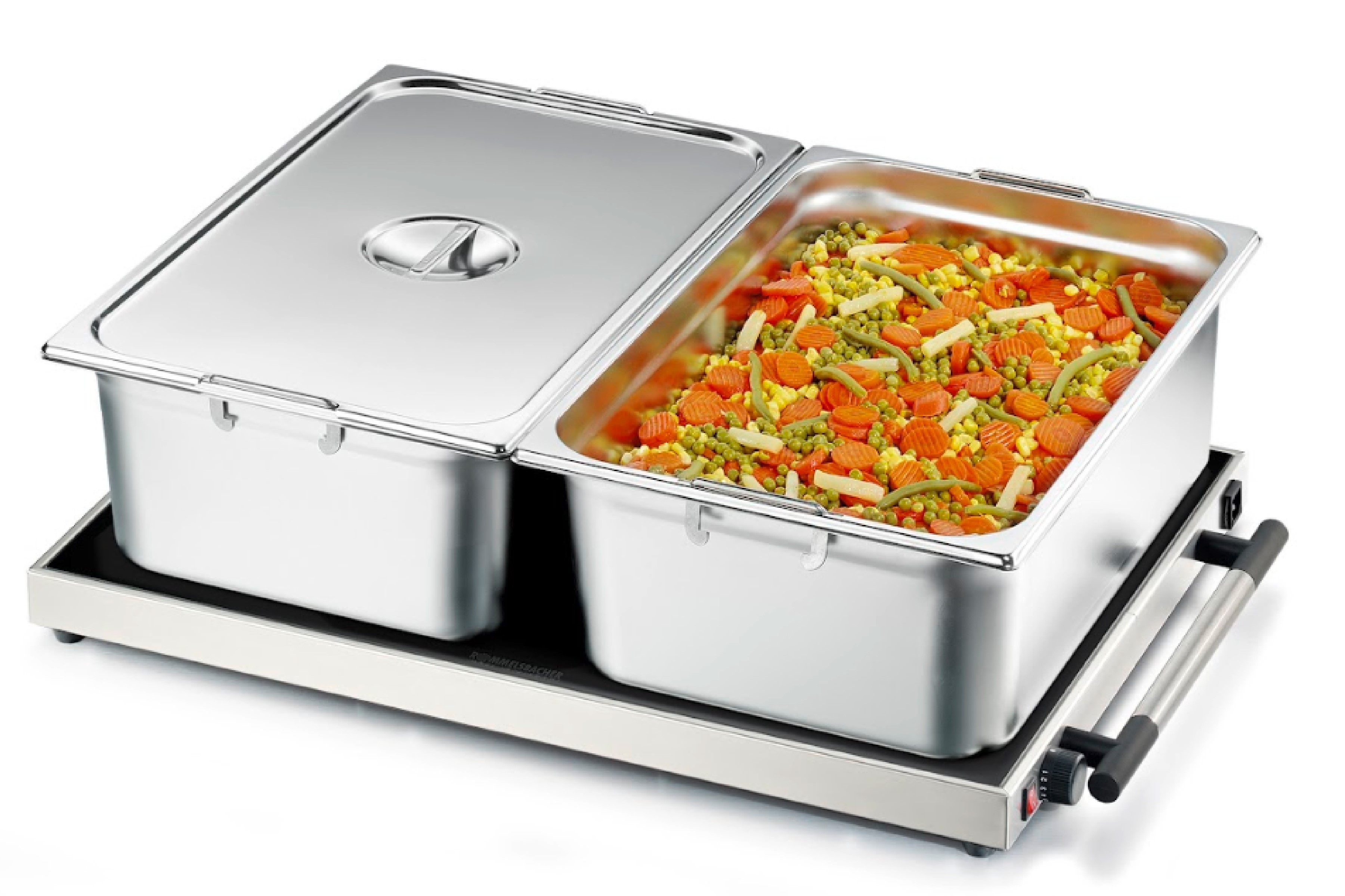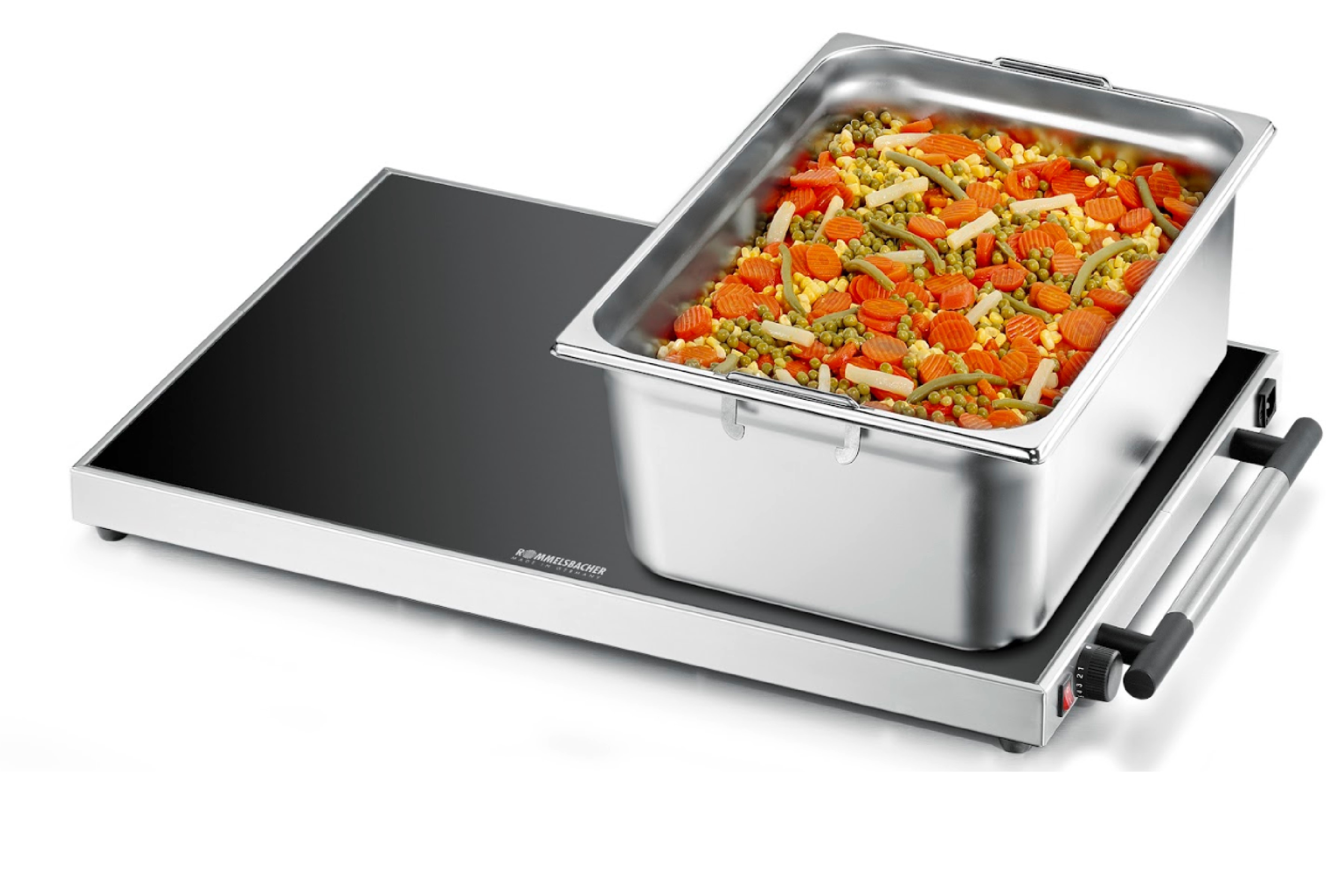 Diese hochwertige Warmhalteplatte in edlem Design, mit praktischem, formschönem Edelstahl Griff und einer großen Warmhaltefläche bieten ausreichend Platz auch für Behälter im 1/1 GN Format.