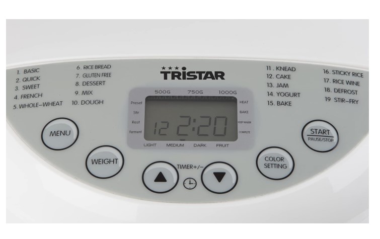 Der Brotbackautomat Tristar BM-4586 ist mit einem LCD-Display mit digitalem Timer und digitalem Bedienfeld ausgestattet.